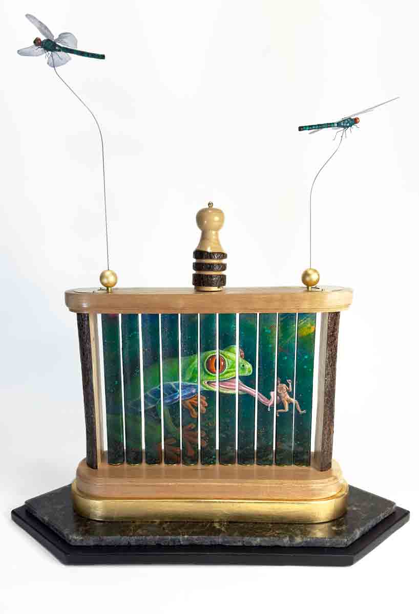 Ronald Conrad trained as a commercial artist turned surrealist painter and sculptor, based in Salem, Oregon. His work blends transformation, consciousness, shifting perspectives, and dream imagery—often with a playful twist of irony and humor. Each piece invites a deeper look, revealing hidden details that emerge upon closer examination and reward the viewer with an enriched experience.
